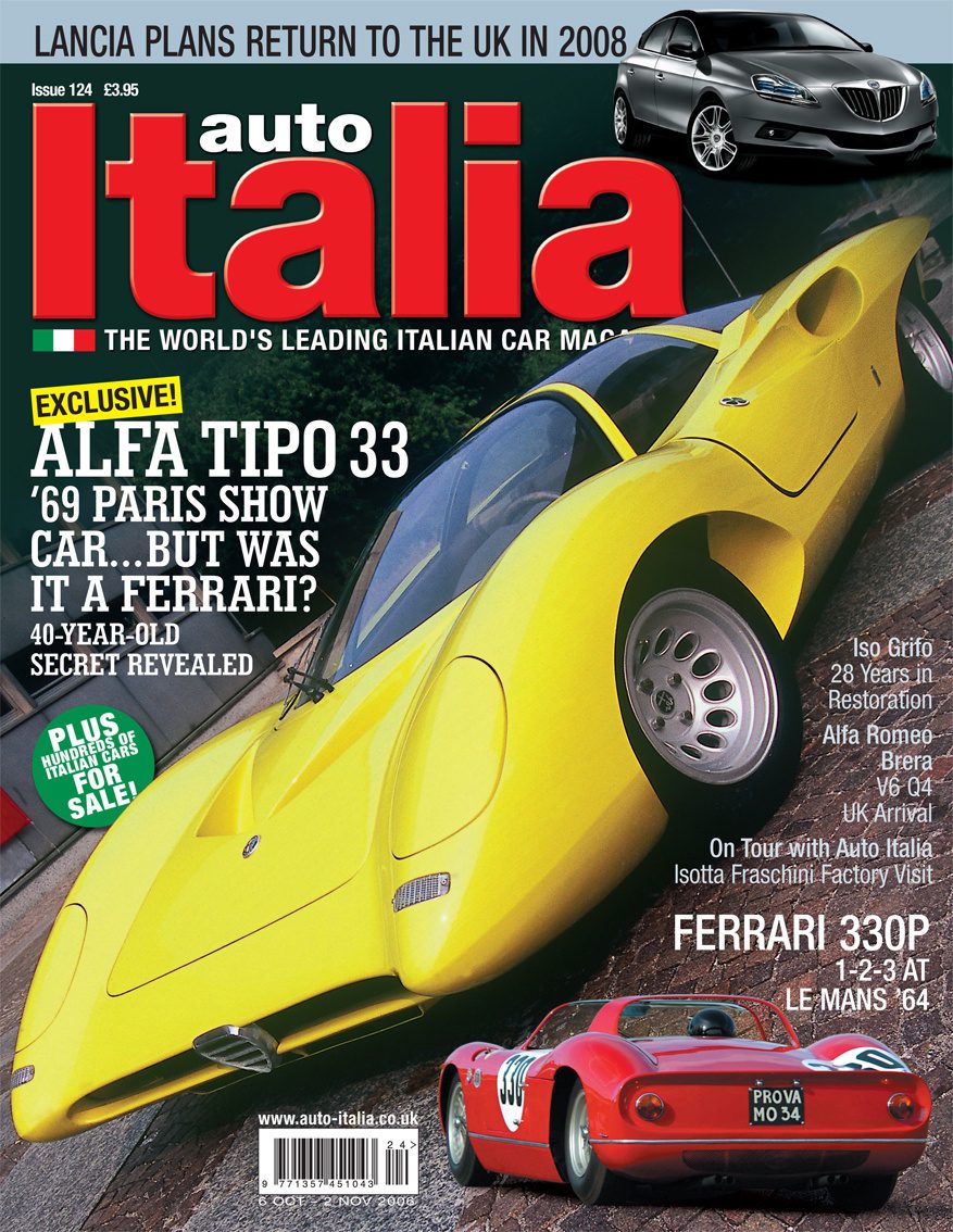 Lancia Plans Return to the UK in 2008, Alfa Romeo Tipo 33 – ’69 Paris Show Car + prototypes, Iso Grifo – 28 Years in Restoration, Alfa Romeo Brera V6 Q4 – UK Arrival, Maserati QPIV, Alfa Romeo 156 2.0 JTS supercharged by Autodelta (UK), On Tour with Auto Italia, Isotta Fraschini Factory Visit, Ferrari 330P – 1-2-3 at Le Mans ’64, Le Mans Classic.