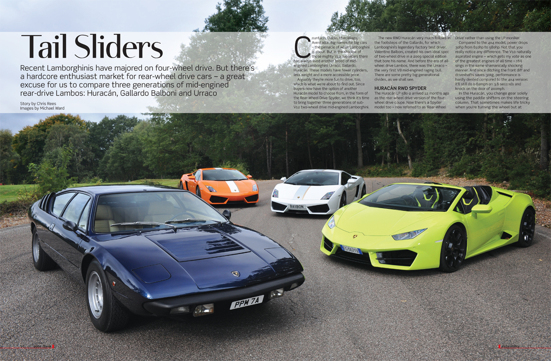 LAMBORGHINI GROUP TEST – Latest Huracán Spyder meets Gallardo Balboni and Urraco