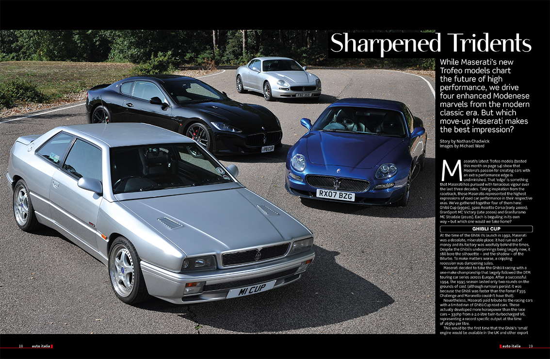 Three hundred issues of Auto Italia – that’s the happy landmark we’re celebrating this month with a bumper issue that includes our favourite ever Ferrari features and each of our writers’ personal highlights over 25 years. Our main story this month is a mega-Maserati group test of the best modern coupes, from Ghibli Cup to 3200 Assetto Corsa and GranSport MC Victory to GranTurismo MC Stradale. We also test Maserati’s latest 202mph Trofeo V8 saloons. Alfa fans will delight in our road test of a modified 156 GTA SW estate – perhaps the best in Britain – as well as our reminiscences of Alfa Romeo racing. Speaking of racing, our Fiat 128 racer cover car is fully track-tested, while we also have full reports from the latest classic events. Oh, and there are stories on two real rarities: a Fiat 850 Spiagetta beach car and the Humberstone TTS, a British-built Alfasud-based coupe from the 1970s.