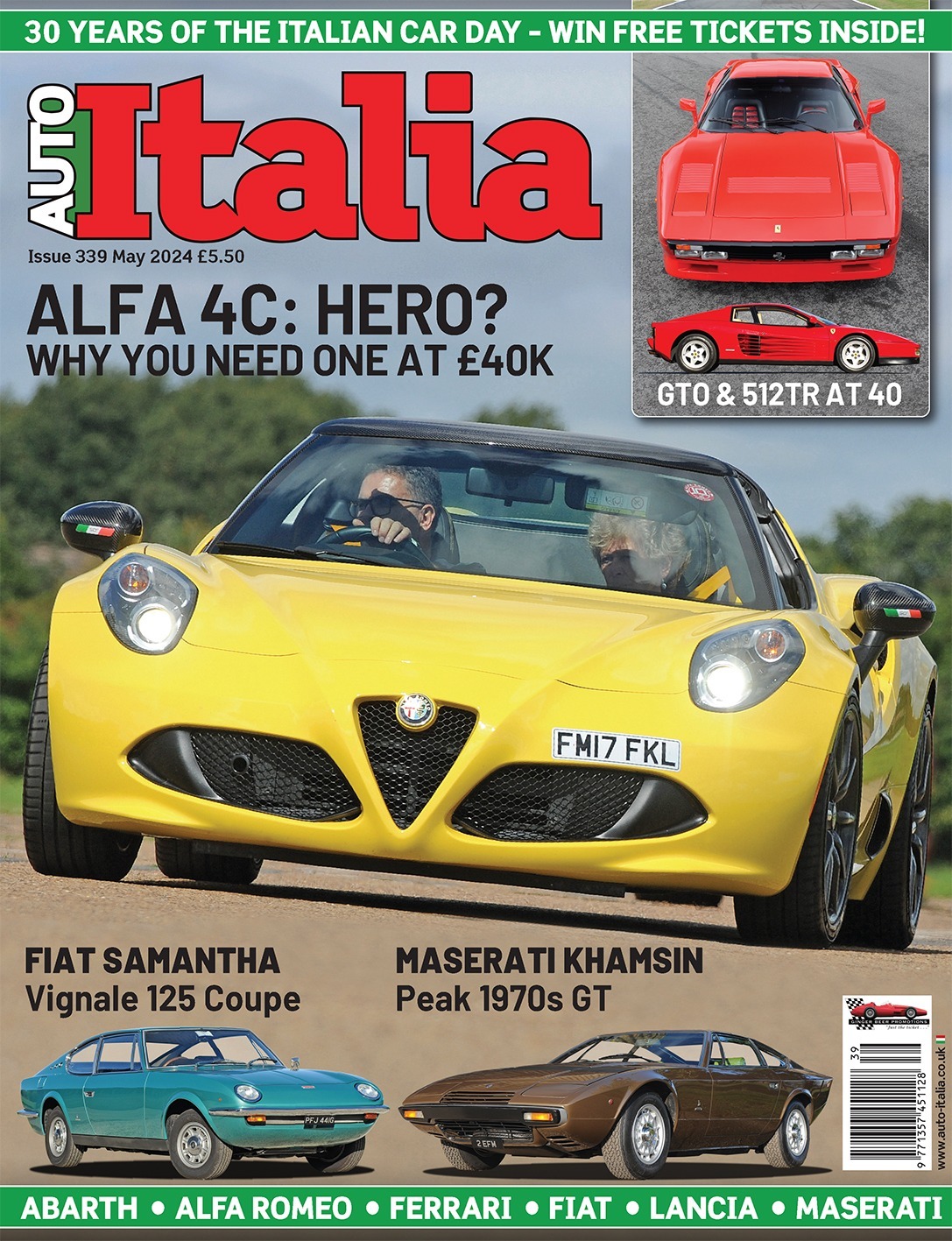 Ah, Alfa Romeo’s 4C – a much maligned and misunderstood sports car, yet a hidden treasure for those who know. And our full expert Alfa 4C guide tells you everything you need to know when buying. We test another all-time classic – the Alfa Romeo Giulia Quadrifoglio – in facelifted Model Year 2024 form for the first time, alongside the new Stelvio Q. One final Alfa story this month is a centenary salute to the hugely successful P2 racer. Is it really 40 years ago that Ferrari launched not one but two of its most iconic supercars, the 288 GTO and Testarossa? It is – and to celebrate, we drive them both. We also sample Maserati’s glorious Khamsin. Fiat fans will delight in our round-up of coachbuilt Fiat 500 sports cars, and the beautiful Fiat Vignale 125 Samantha, while we also give our verdict on the new Fiat 600e. We have show reports from the US, Switzerland, France and Brooklands. Oh, and as always, all the latest Italian car news, cars for sale and a full 2024 events diary.